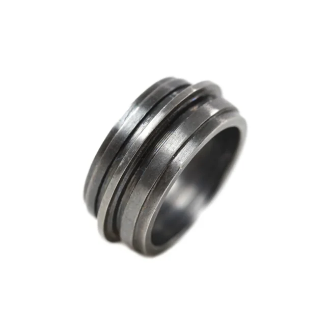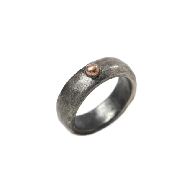 Ring van geoxideerd zilver met een 18kt roodgouden bolletje