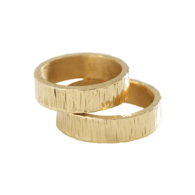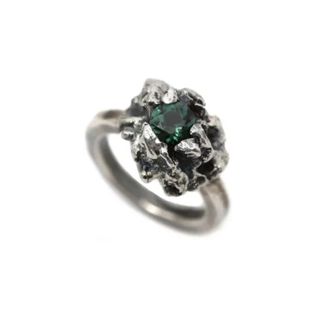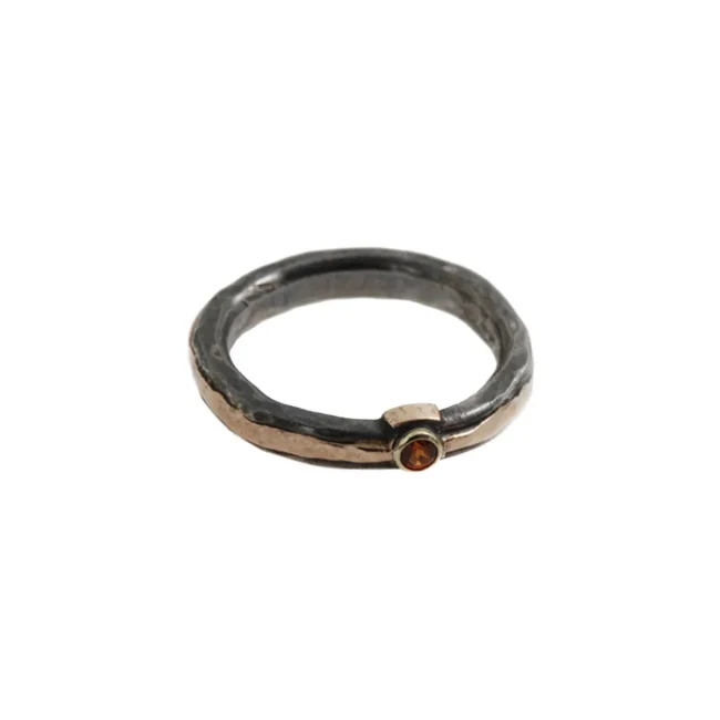 Gehamerde ring van geoxideerd zilver en 18kt roodgoud en een hessoniet