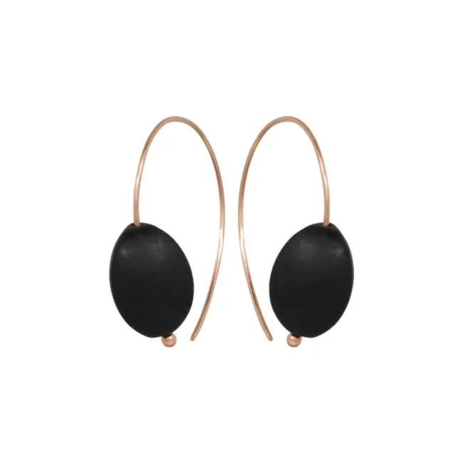 Oorhaken gemaakt van 18kt roodgoud met een matte onyx ‘noot’