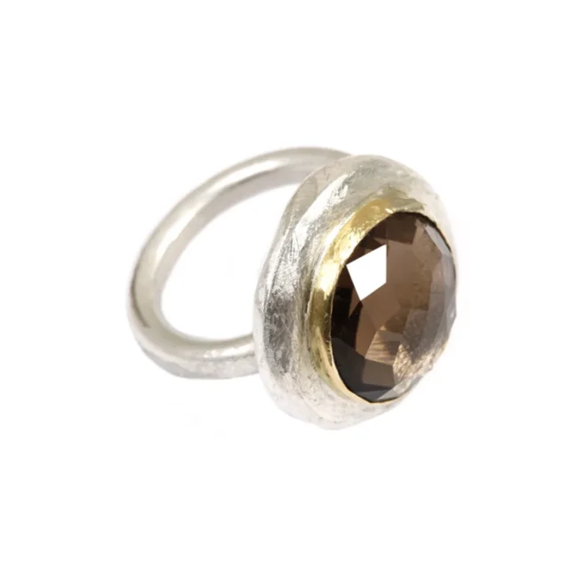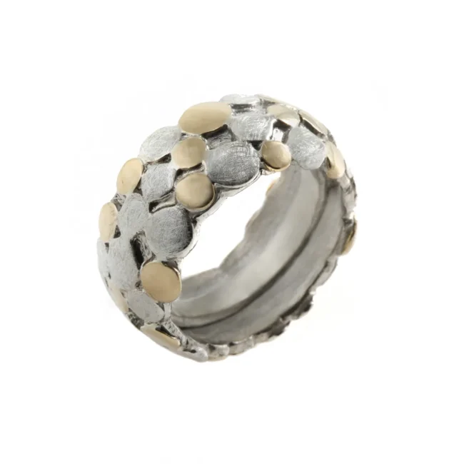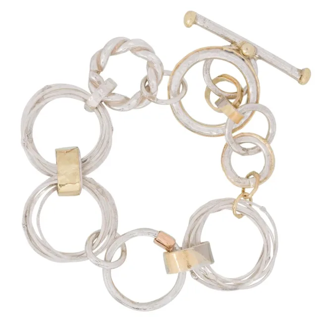 Ringenarmband gemaakt van zilver en 18kt geelgoud