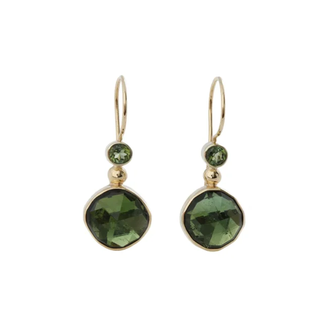 Oorsieraden gemaakt van 18kt geelgoud en groene toermalijn