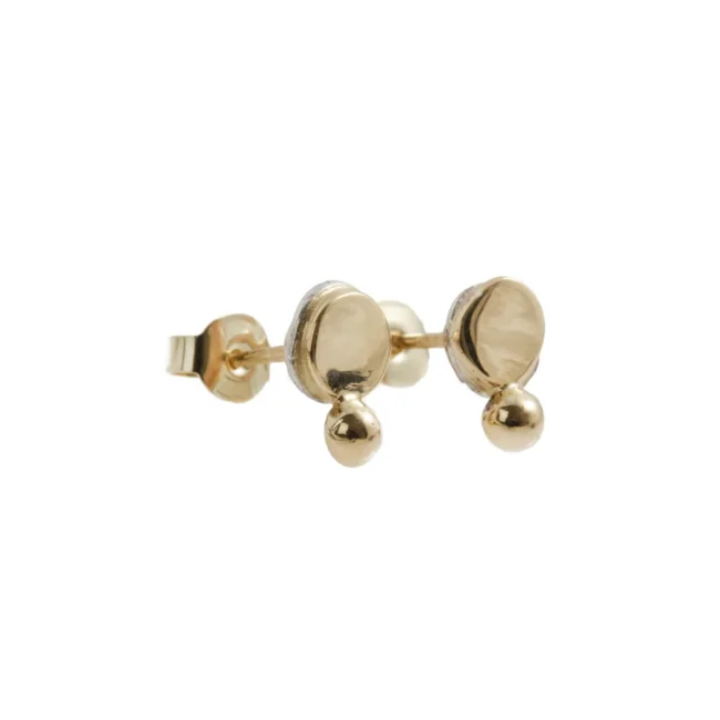 Oorsieraden gemaakt van plakjes zilver en 18kt geelgoud en roodgoud