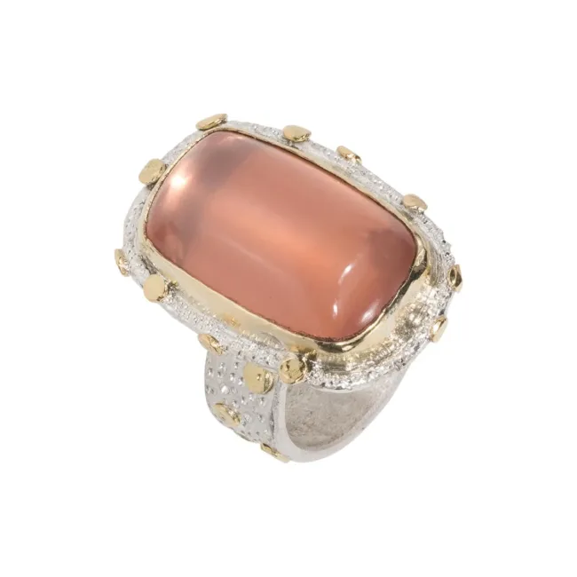 Double dots ring gemaakt van zilver en 18kt geelgoud met een rechthoekige rozenkwarts