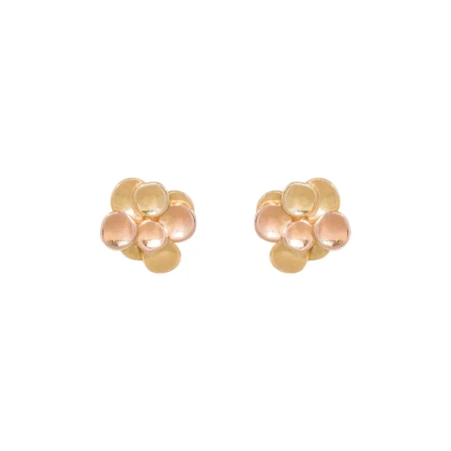 Schoteltjes oorstekers gemaakt van 18kt geelgoud en roodgoud