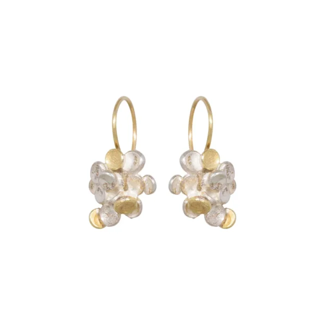 Schoteltjes oorbellen gemaakt van 18kt geelgoud en zilver
