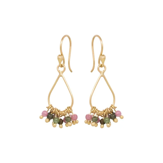 Oorbellen gemaakt van 18kt geelgoud met toermalijnbolletjes