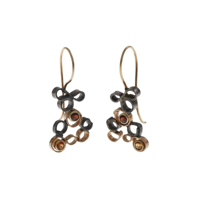 Oorsieraden kringeltjes gemaakt van zilver en goud 18kt met citrien en granaat