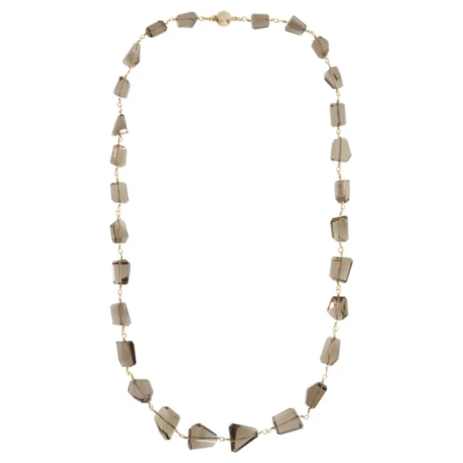 Collier van rookkwarts, geketteld met 18kt geelgoud