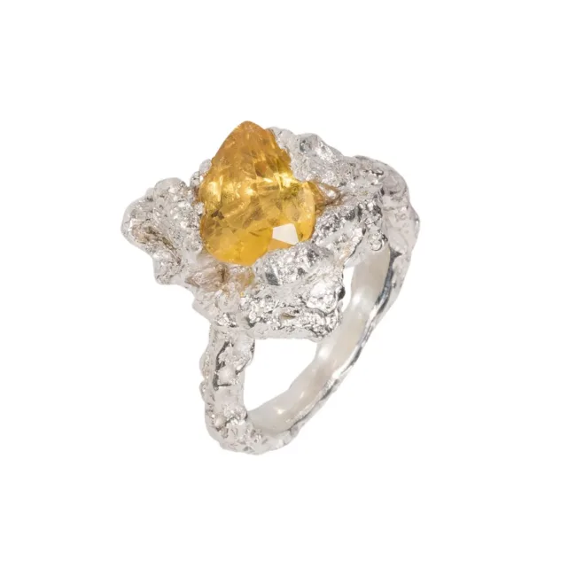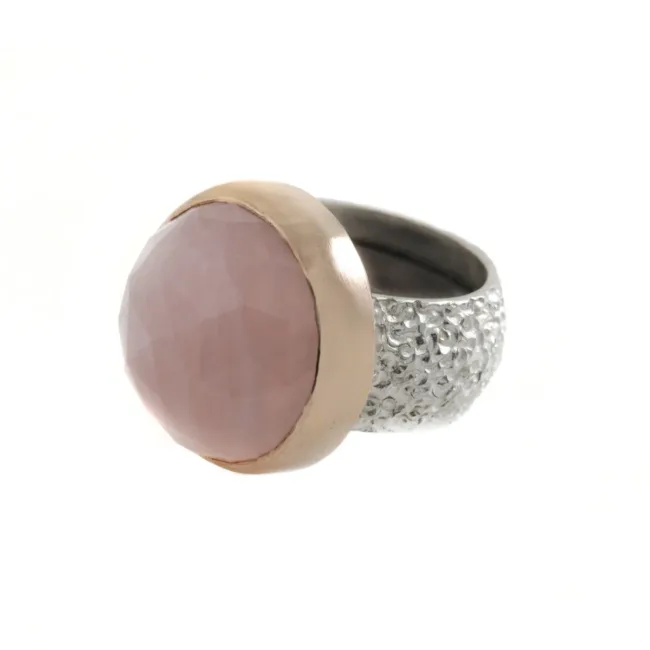 Doodle ring zilver met grote roosgeslepen rozenkwarts gezet in 18kt roodgoud