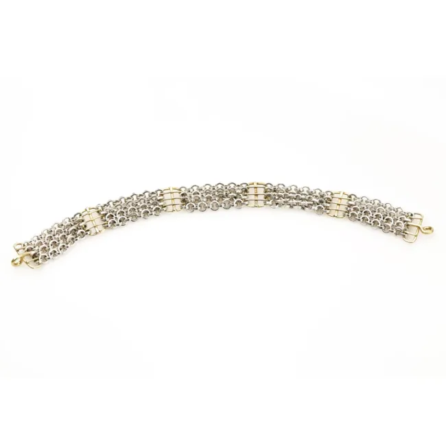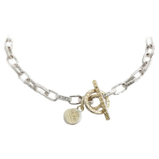 OH DEAR a necklace gemaakt van zilveren schakels, kapittelslot van zilver en 18kt geelgoud en een munt