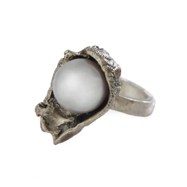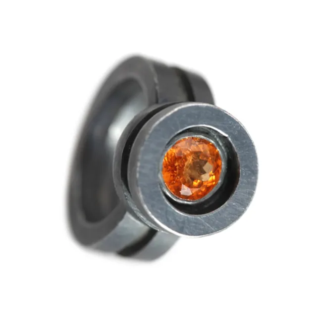 Plumberring gemaakt van zilver met een spessartiengranaat