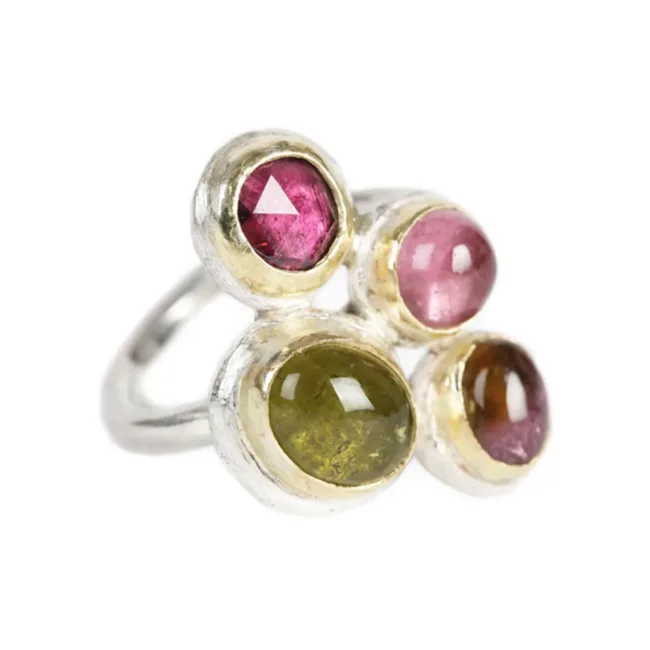 Ring gemaakt van zilver en 18kt geelgoud met vier toermalijnen