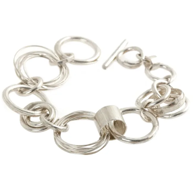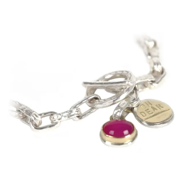 OH DEAR a bracelet gemaakt van zilver met een munt van zilver en 18kt geelgoud en een gebeitste calchedoon gezet in geelgoud