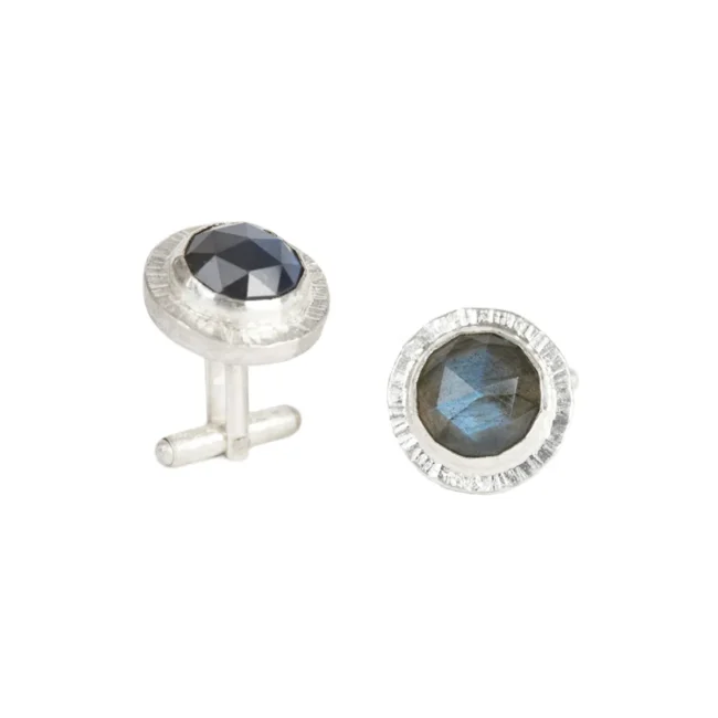Plissé manchetknopen gemaakt van zilver met labradoriet