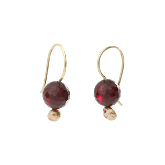 Oorsieraden met een 18kt geelgouden haak, een granaat en een 18kt roodgouden bolletje