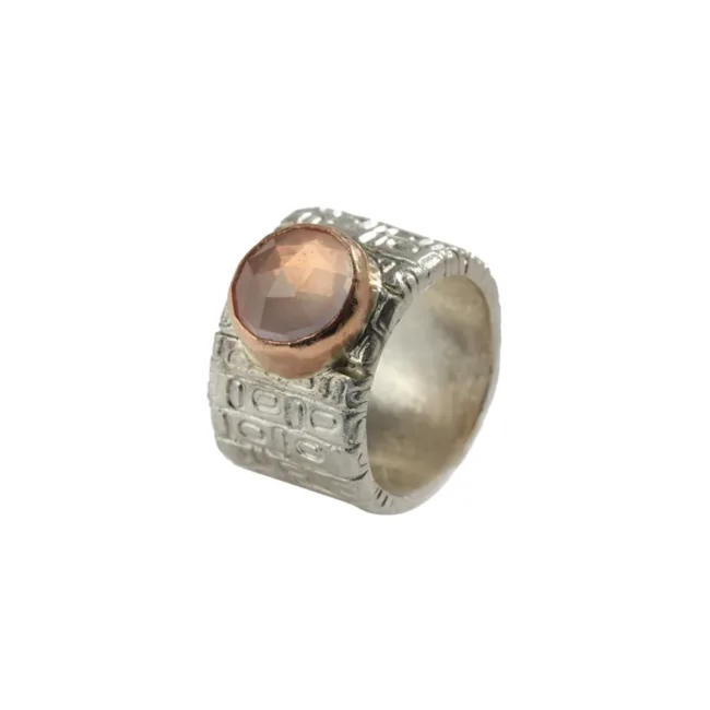 Ring wallpaper gemaak van zilver en 18t roodgoud, met roosgeslepen rozenkwarts