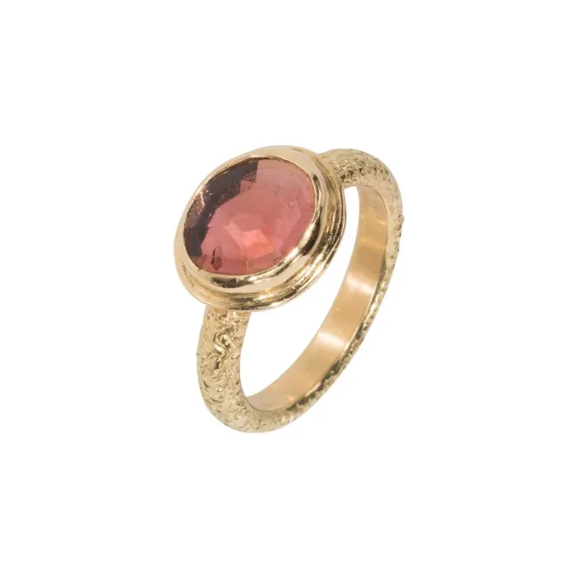 Doodle ring gemaakt van 18kt geelgoud met een roze toermalijn