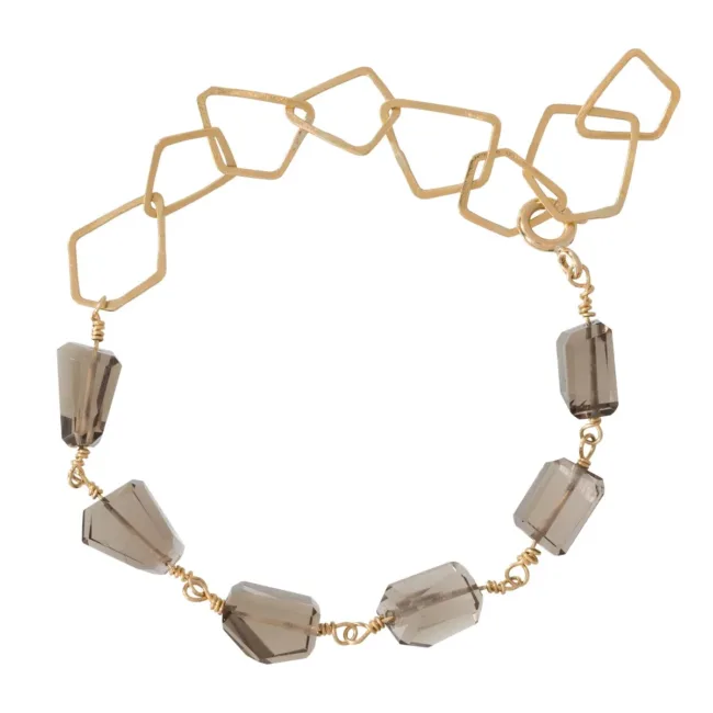 Armband Ice cubes 18kt geelgoud met rookkwarts, geketteld met geelgoud