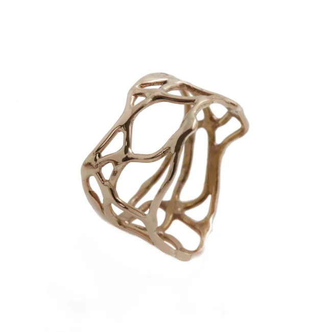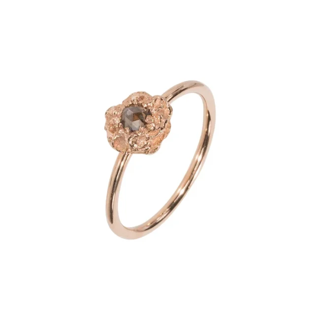 Rotsring gemaakt van 18kt roodgoud met een diamant