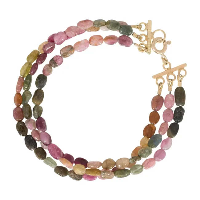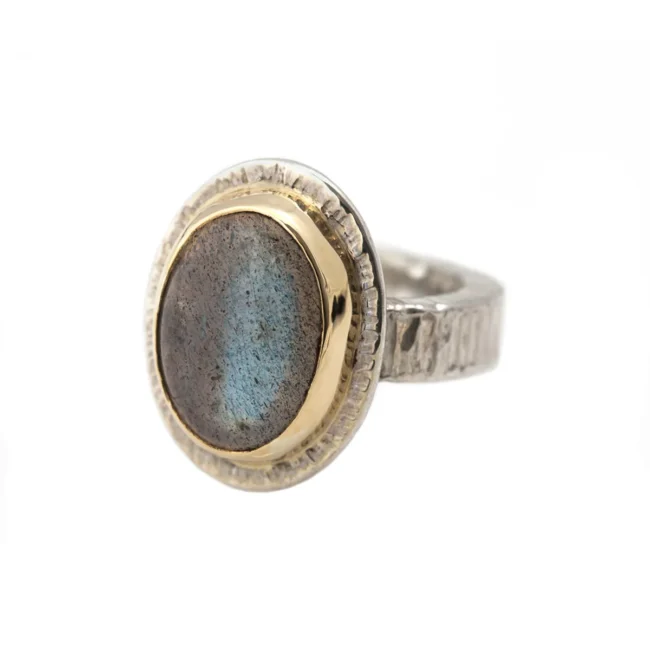 Plisséring gemaakt van zilver en 18kt geelgoud met labradoriet