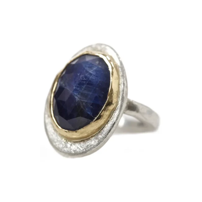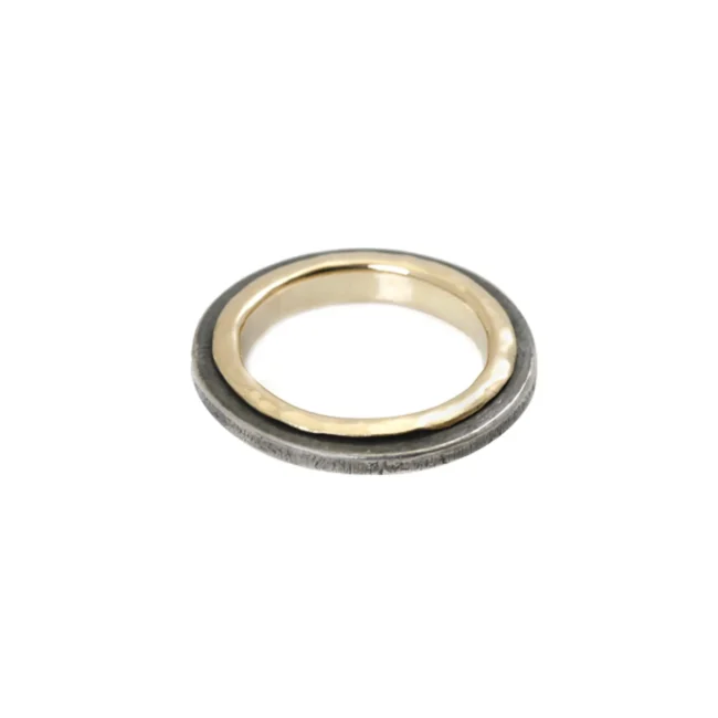 Ring gemaakt van geoxideerd zilver en een 18kt gouden band aan de binnenkant van de ring