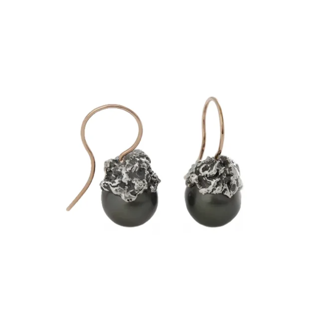 Rotsoorbellen Tahitiparel zilver en 18kt roodgoud