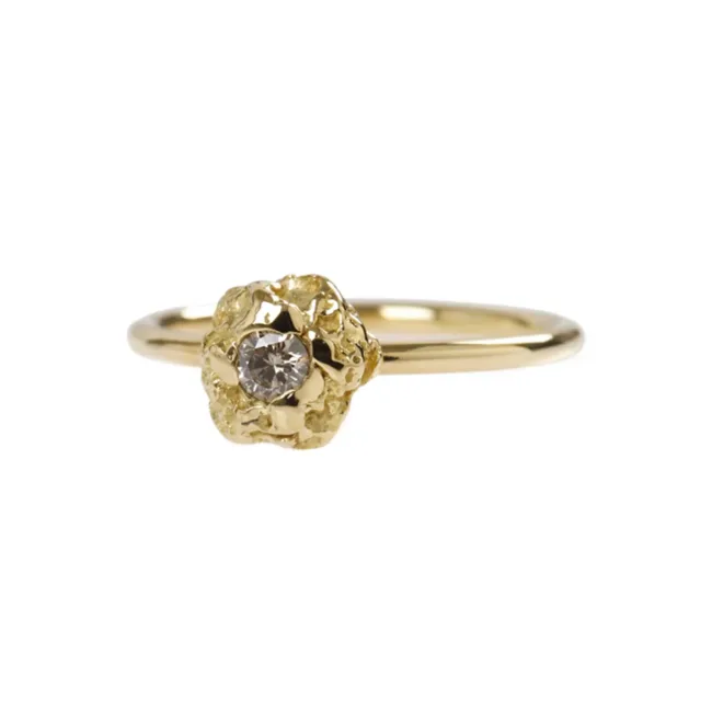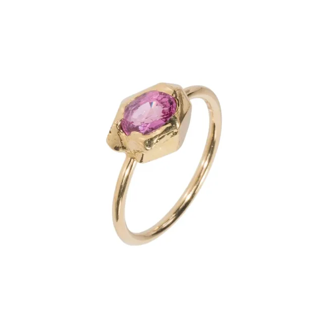 Ring Fristi on the rocks gemaakt van 18kt geelgoud met een roze spinel