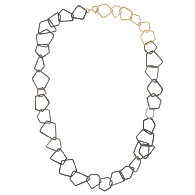 Collier Ice cube gemaakt van geoxideerd zilver en 18kt geelgoud